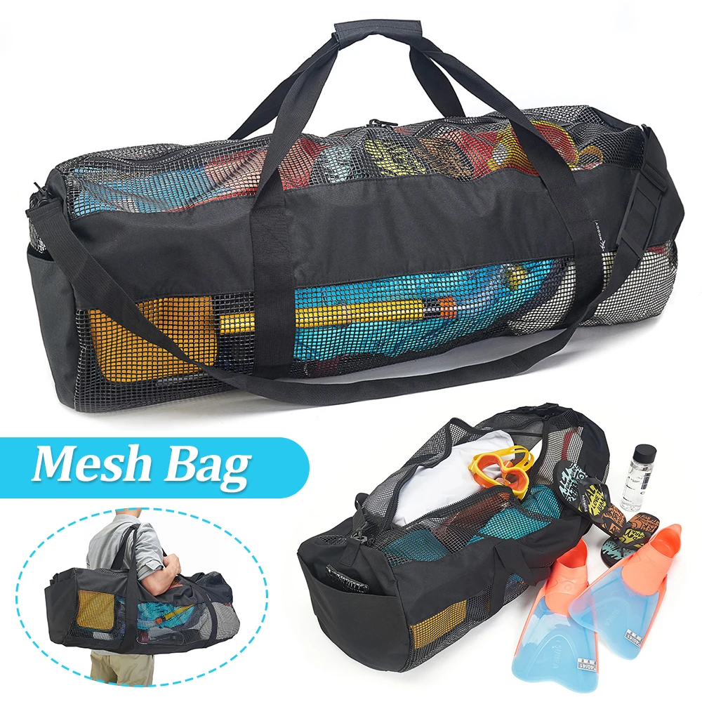 1. Great Quality: The dive mesh bag is made of 600D nylon and mesh, which is lightweight, strong and . 2. Large Storage Space: The spacious mesh bags are great for most sports equipment including snorkeling gear for adults, scuba divers gear, freedive gear, swimming equipment, gym items, beach accessories and many more. 3. Easy to Carry: The dive mesh bag tote can hold your diving equipment, with the removable and adjustable shoulder strap for shoulder or cross body carry. The shoulder strap can be removed, so you can also carry it by hand. 4. Quickly Rinse off Your Gear: The mesh beach bag material allows you to quickly and easily rinse any salt water, sand, dirt or mud off through your mesh bag while your gear is still inside. The mesh allows any water to drain and helps your scuba gear to quickly air dry. 5. Great Gift: The storage bag is perfect as birthday, Christmas and anniversary gift for family and friends.Specification: Name: large capacity diving equipment bag Material: 600D nylon + mesh Color: black Size: about 95x34x34cm/30.3×13.4×13.4in Weight: about 960g/34ozNote: Please allow slight size differs due to manual measurement. Due to the different display and different light, the picture may not show the actual color of the item. Thanks for your understand. 1 x Mesh Bag